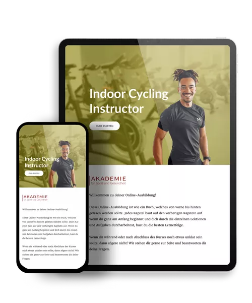 Dein Fernlehrgang als Indoor Cycling Instructor startet direkt auf deinem Laptop oder PC, sobald du dich registriert hast. Deine Lernzeiten teilst du dir selbst frei ein. Dafür hast du rund um die Uhr Zugriff auf die interaktiven Kursinhalte. Du bearbeitest Schritt für Schritt die einzelnen Module und lernst mit anschaulichem Bildmaterial, spannenden Quiz und einer Vielzahl an Lehrvideos. Wir bilden dich intensiv aus, damit du abwechslungsreiche Indoor Cycling Kurse strukturiert aufbauen und planen kannst.